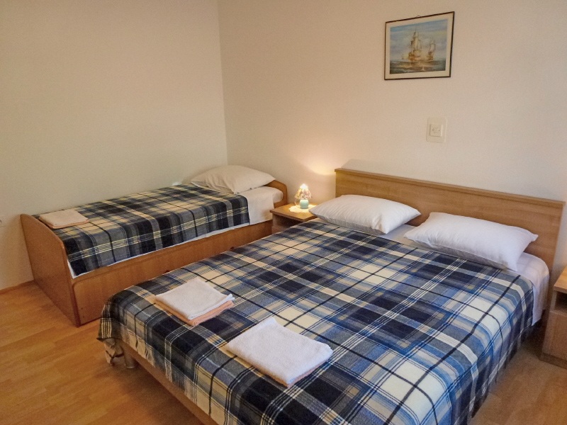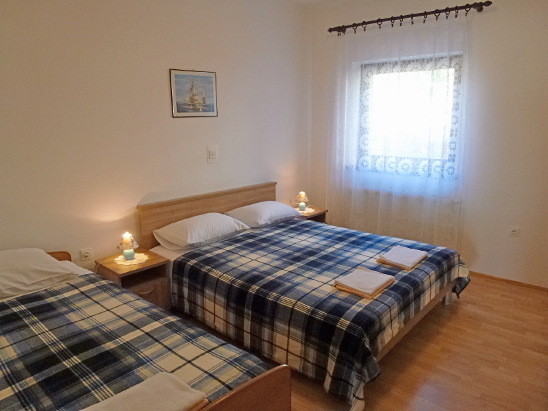 APARTMENTS "BRUSIĆ" NJIVICE. Velika obiteljska kuća smještena u mirnom djelu mjesta na brdašcu iznad prekrasne plaže do koje se dolazi 10-tak minuta pješice. U prizemlju kuće iznajmljuju se dva apartmana i studio. Apartmanima je na korištenje dostupan roštilj i osigurano parkirno mjesto.